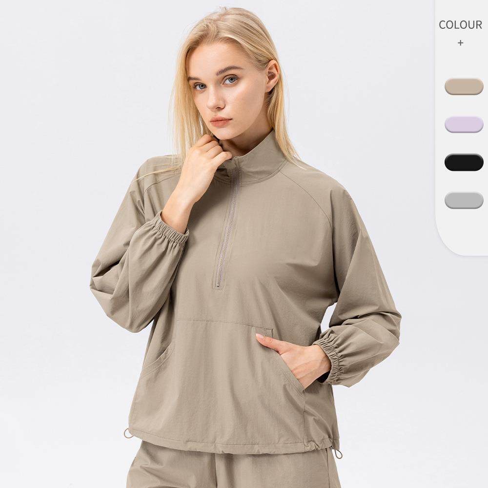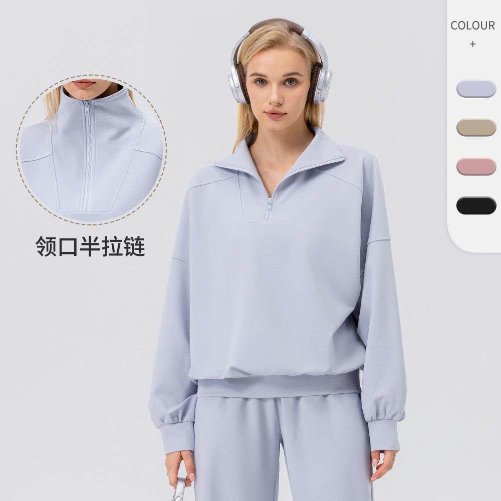 秋冬运动卫衣女立领半拉链速干透气跑步长袖宽松休闲运动健身上衣