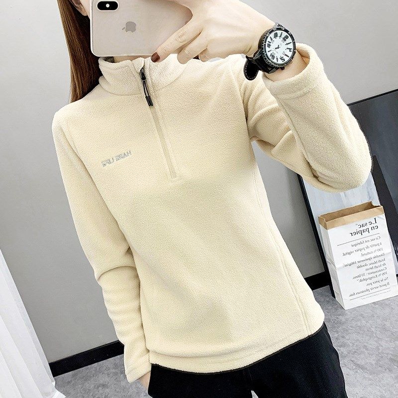 套头衫抓绒衣女保暖加厚秋冬运动卫衣户外加绒t恤立领摇粒绒上衣