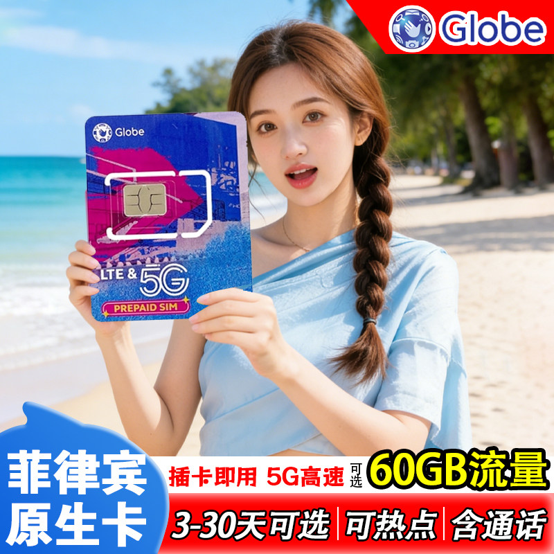 Globe菲律宾电话卡5G流量上网卡长滩岛旅游手机卡5/7/10/15/30天