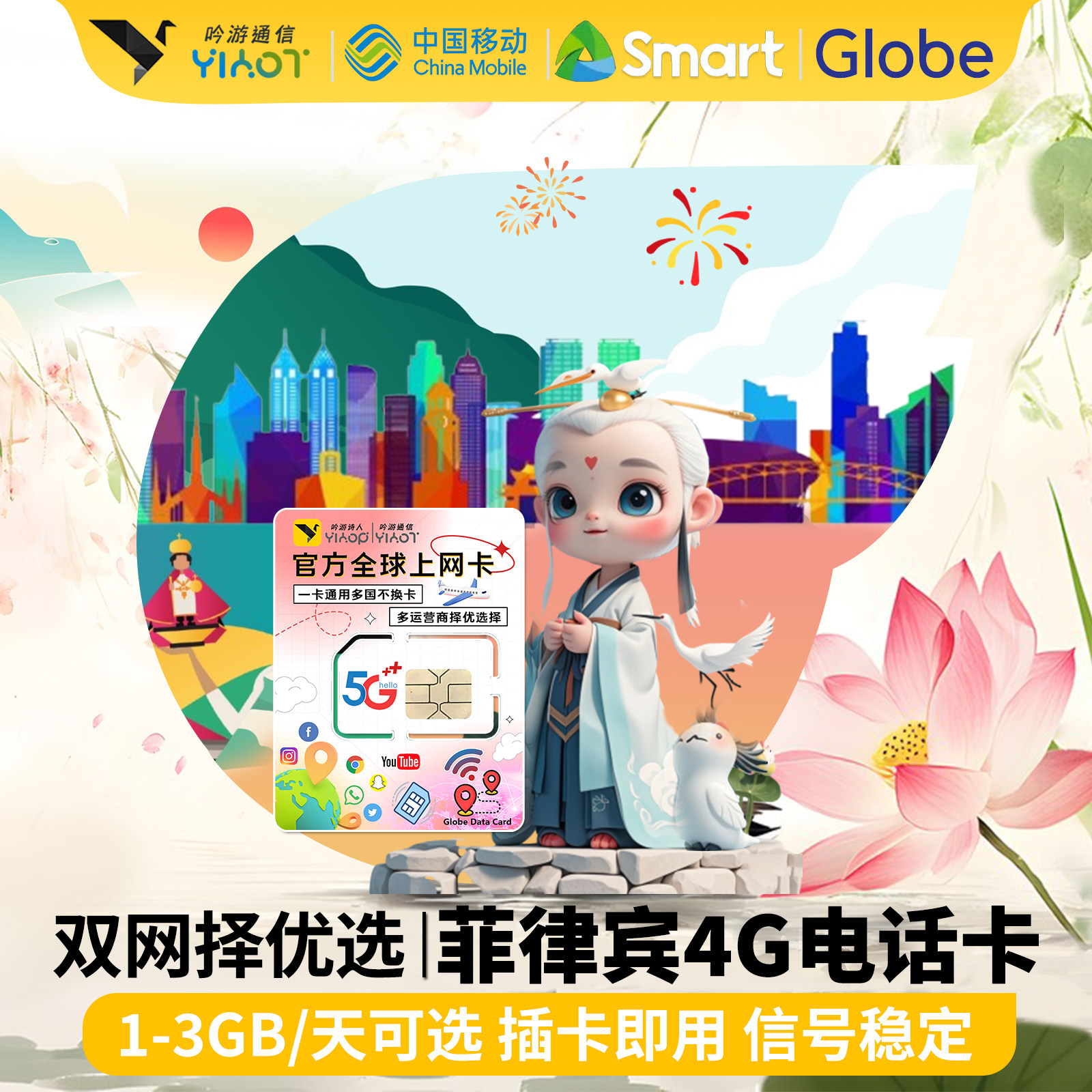 菲律宾电话卡Smart+Globe双网络中国移动手机上网热点 长滩岛旅游