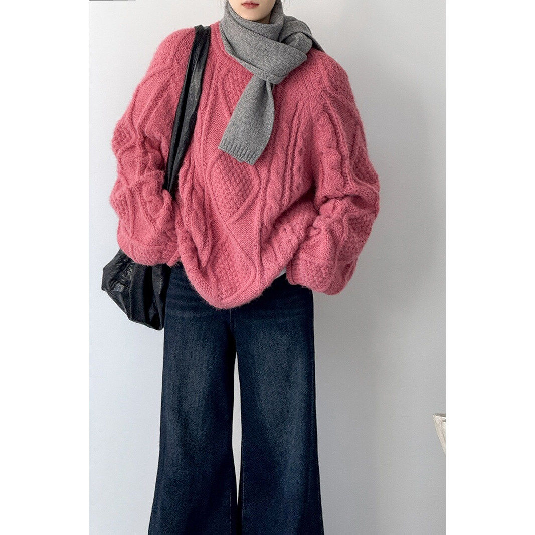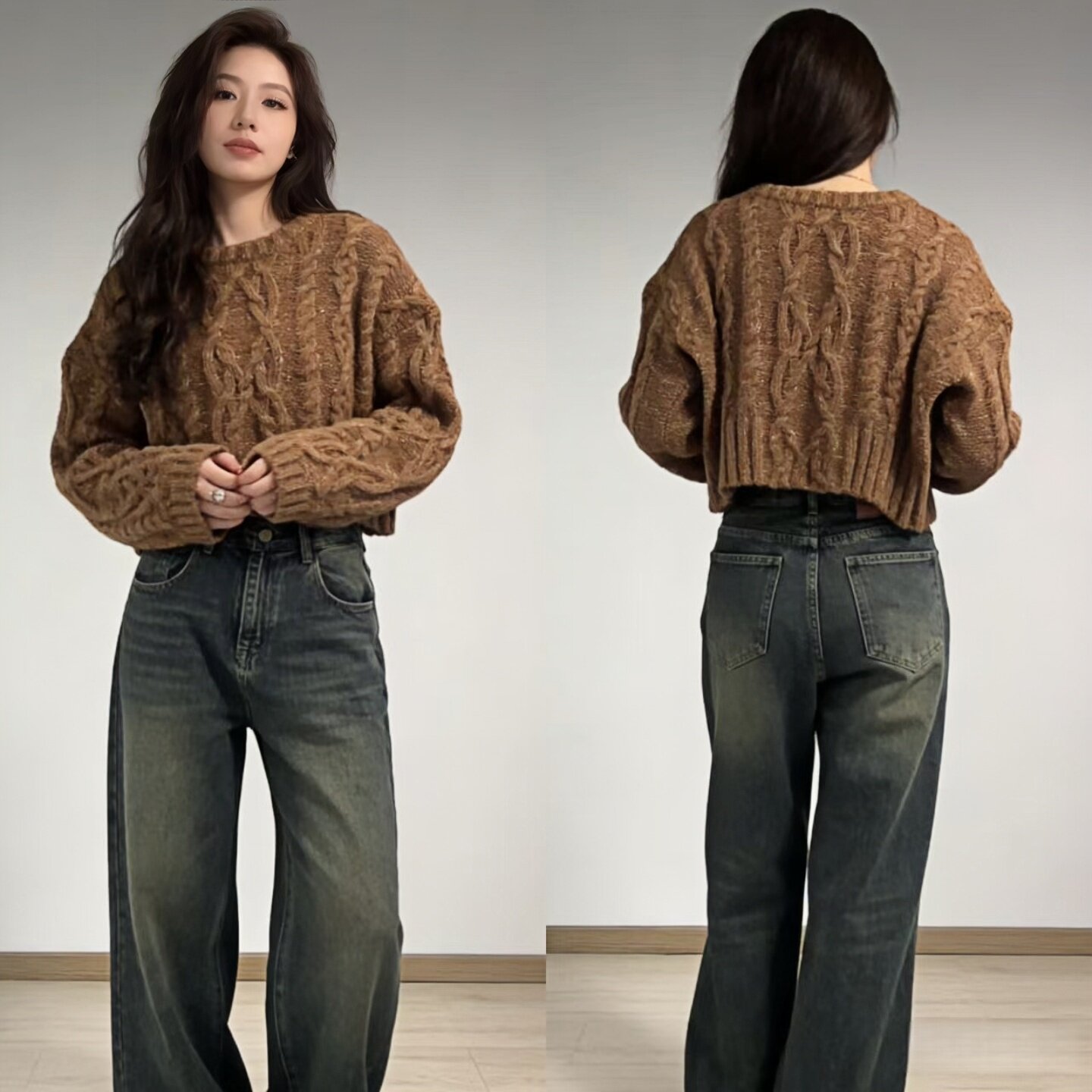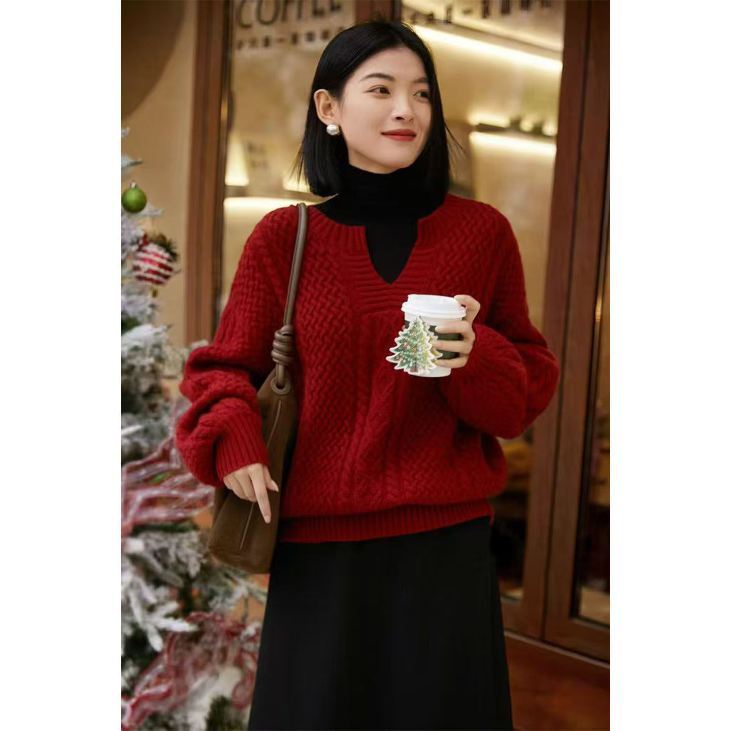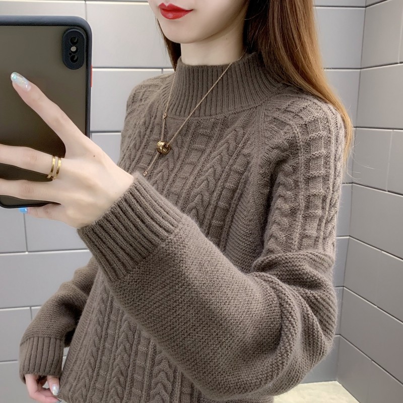 - 秋冬韩版新款女士毛衣套头中长款前短后长宽松大码针织衫打底上衣