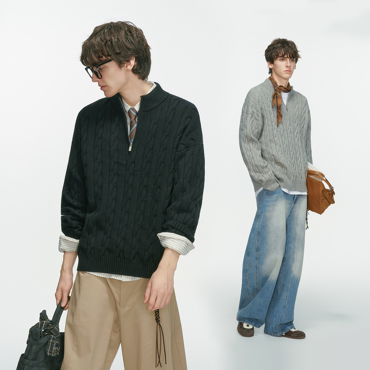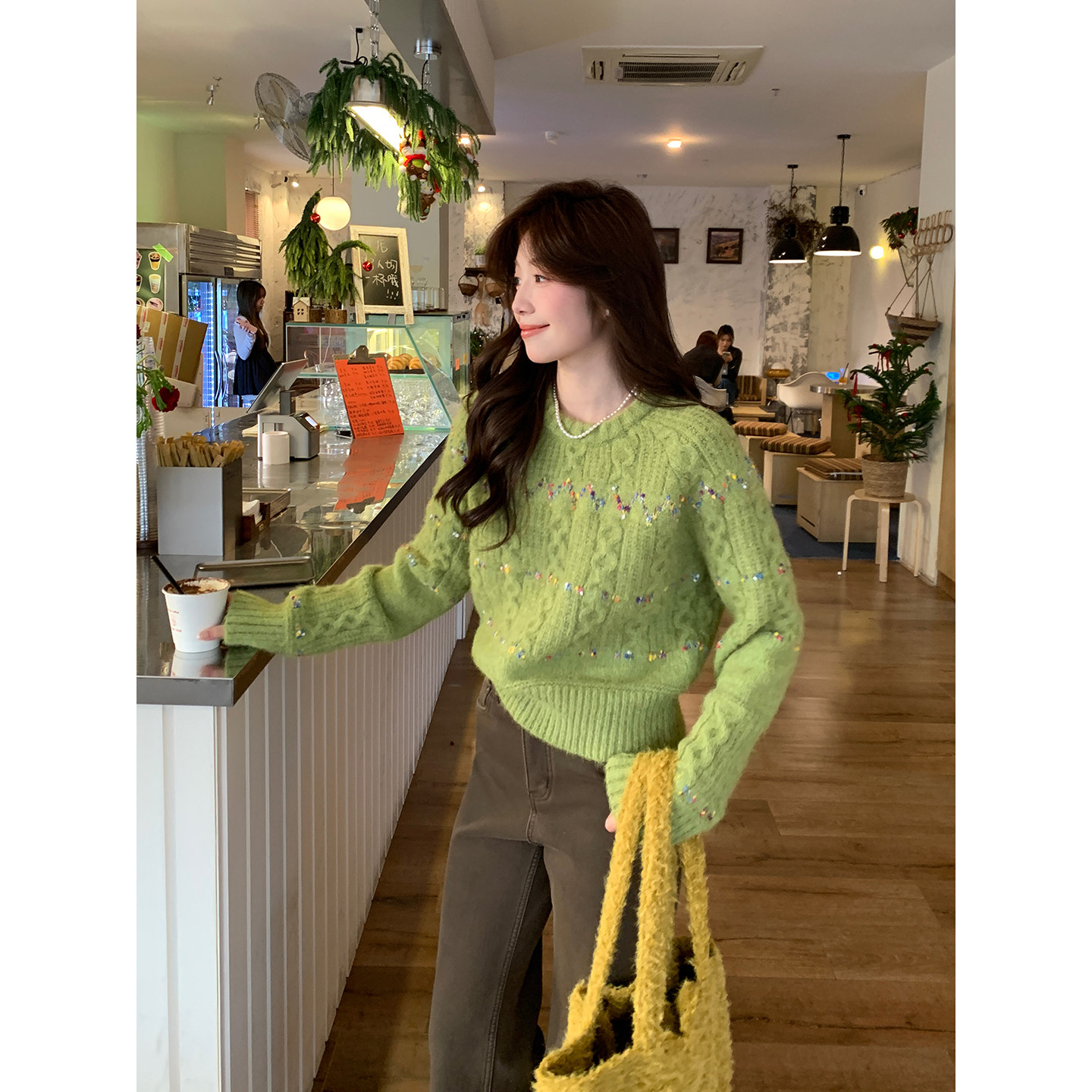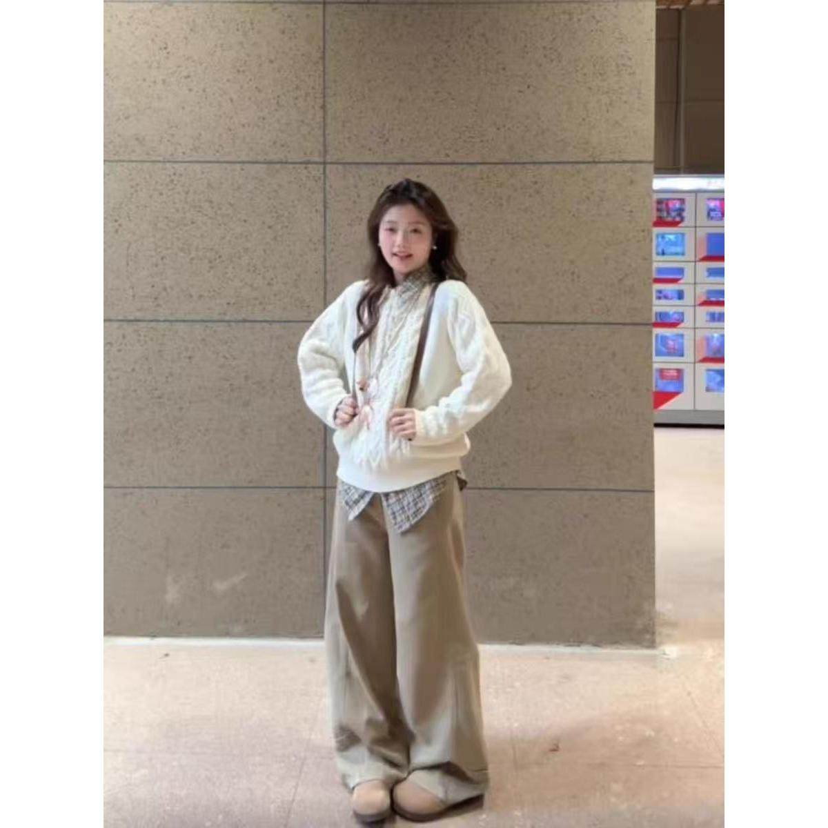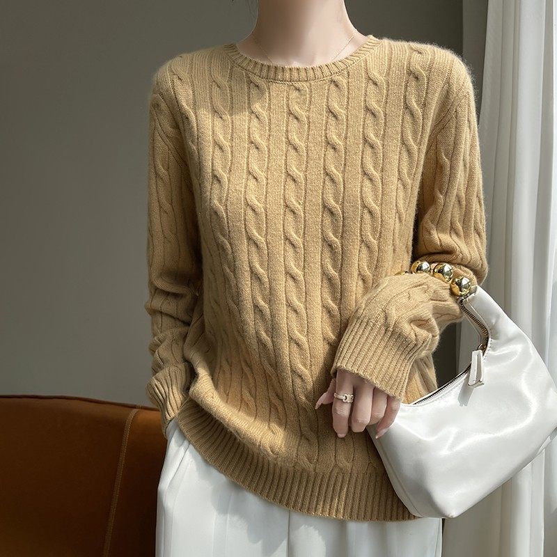 - 秋冬韩版新款女士毛衣套头中长款前短后长宽松大码针织衫打底上衣