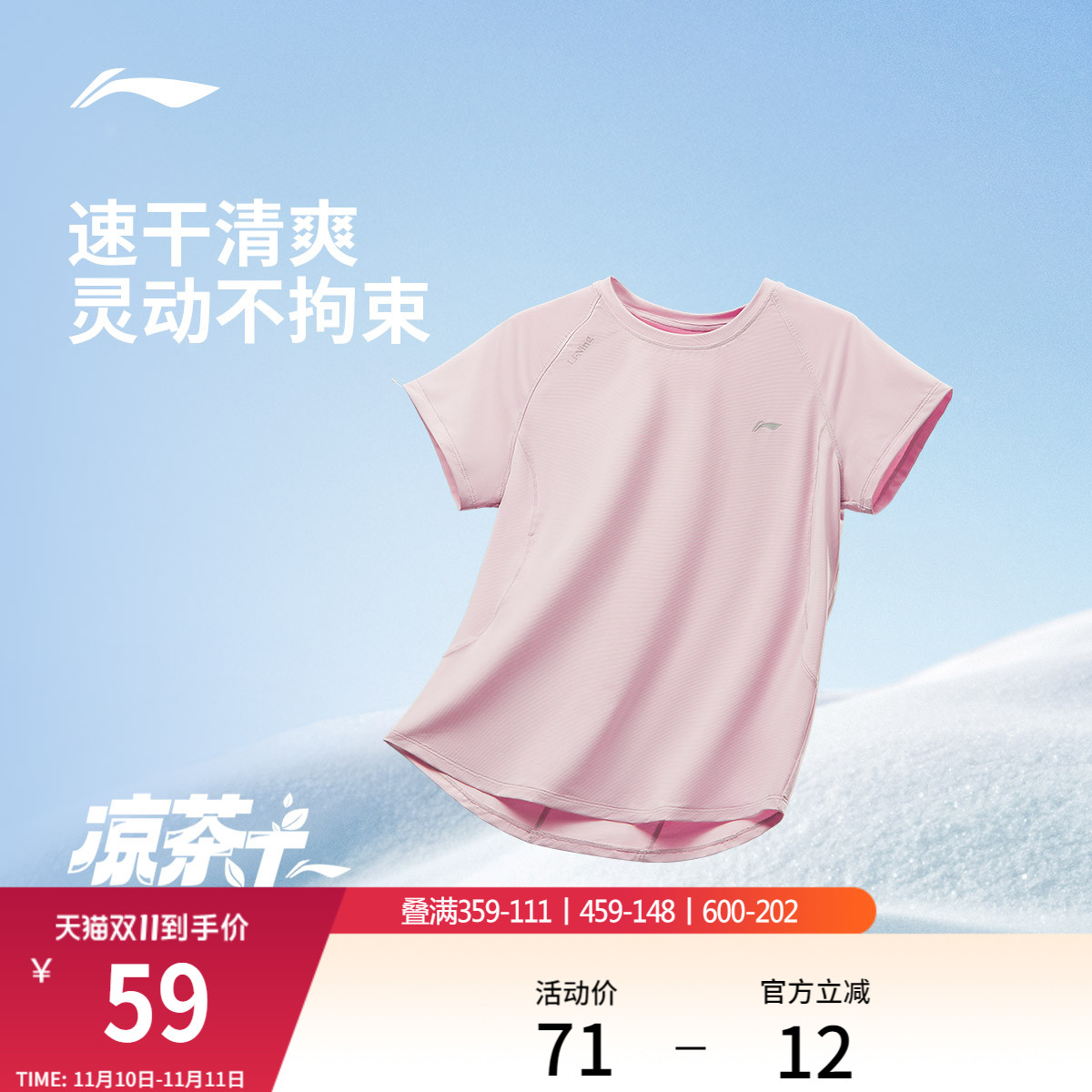 李宁速干T恤女夏季新款瑜伽健身羽毛球透气跑步速干上衣运动短袖