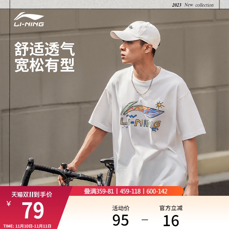 李宁短袖男士夏季官方半袖情侣装运动上衣男装体恤宽松白色T恤女