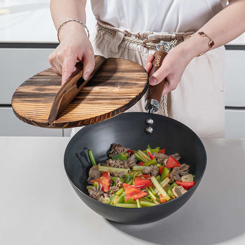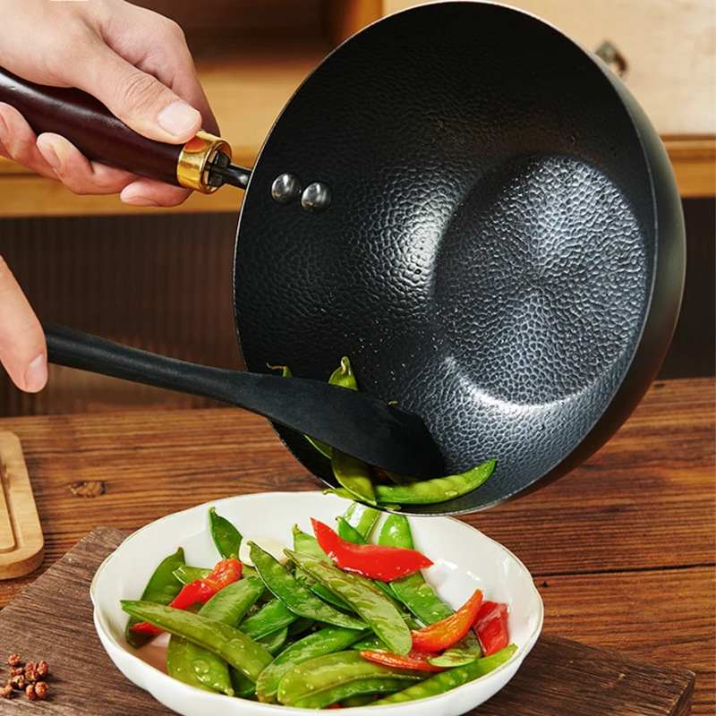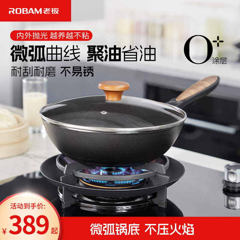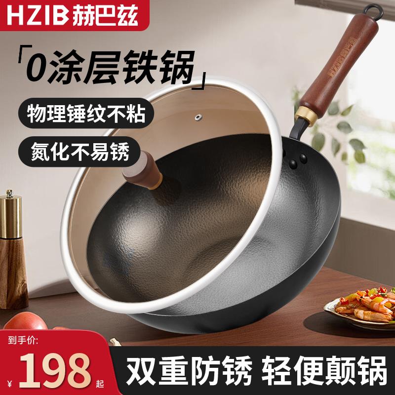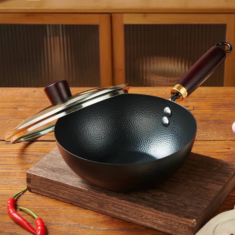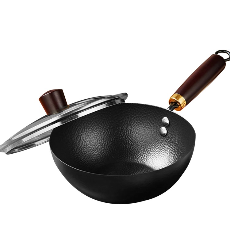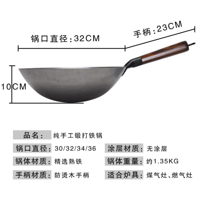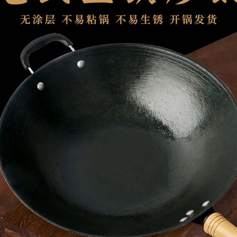 章丘传统老式铁锅无涂层家用熟铁炒菜锅不粘锅适用燃气灶专用炒锅