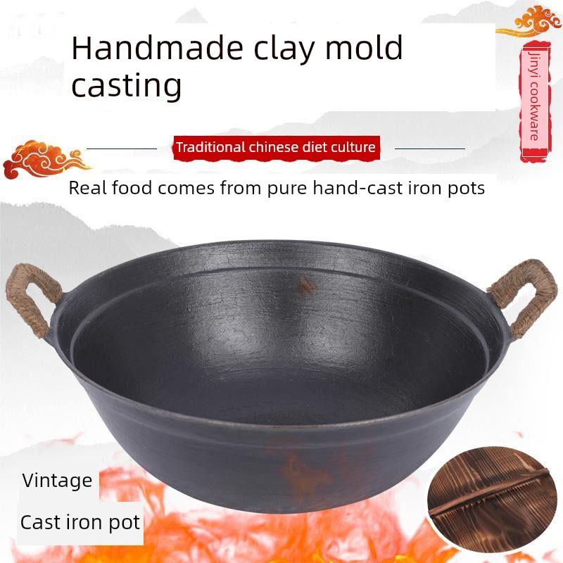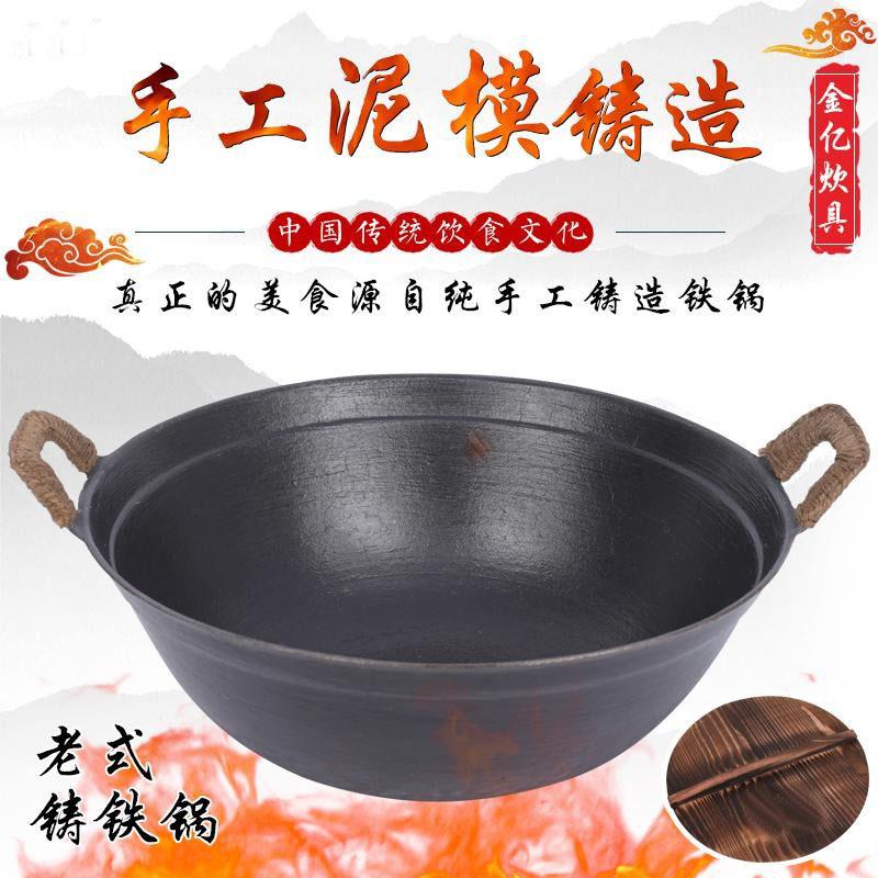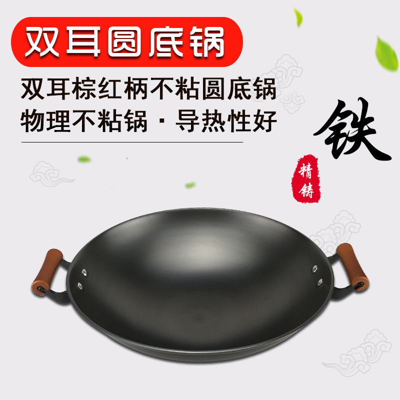 老式铁锅双耳炒锅农村家用炒菜锅不粘锅无涂层锅加深加厚圆底厨师