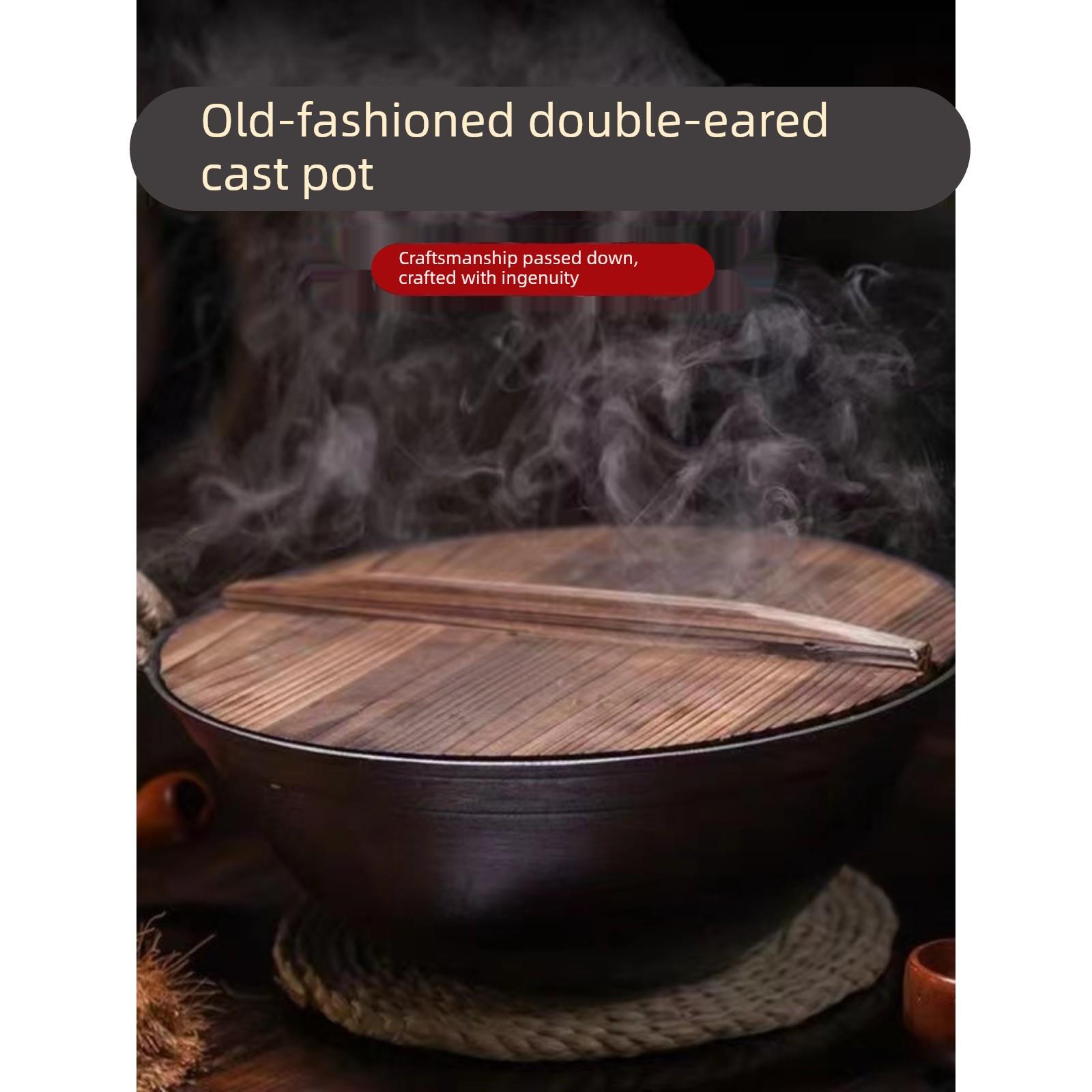 老式铸铁锅双耳炒锅生铁无涂层炒菜锅不粘锅家用燃气灶专用炒菜锅