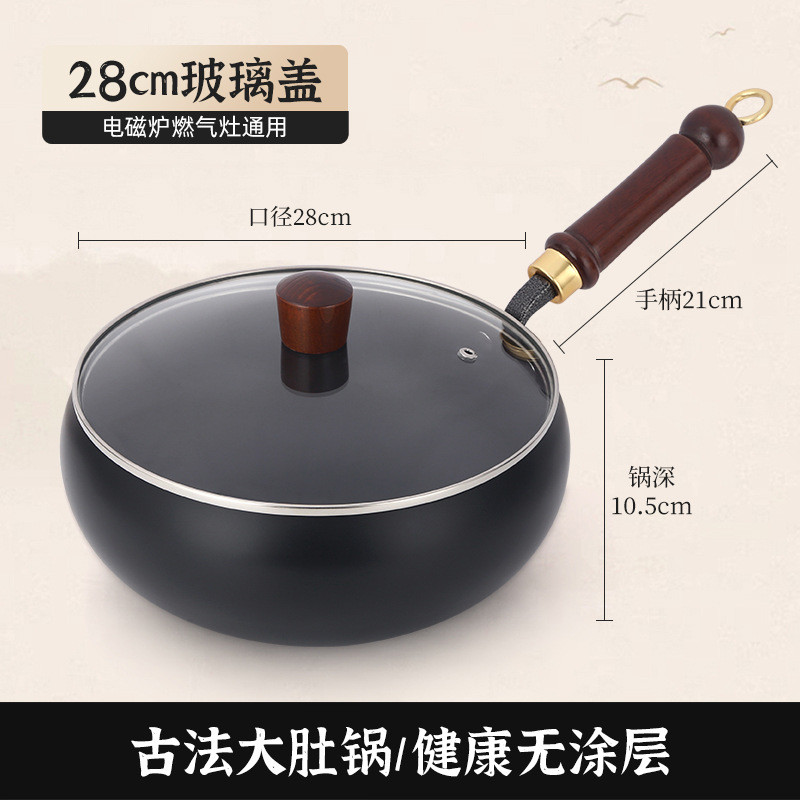三叔三婶大肚锅加厚不粘锅手工炖锅炒菜锅无涂层炒锅家用深口铁锅