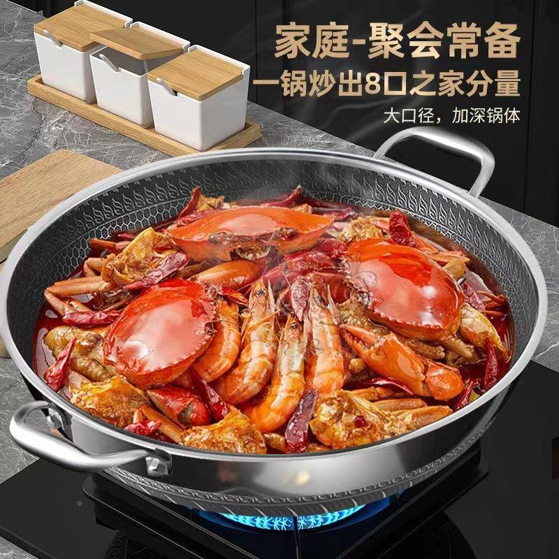 铿锵老式炖锅316不锈钢加深炒菜锅不粘锅家用加厚炖肉寿喜锅炒锅