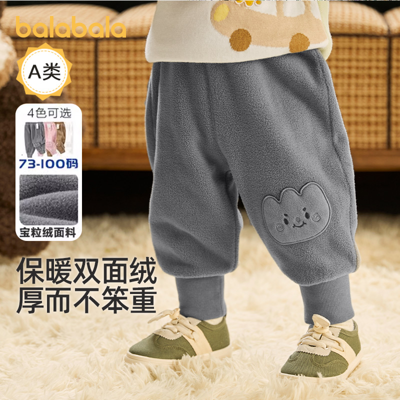 巴拉巴拉宝宝裤子男童长裤女童加绒裤新款冬装运动裤摇粒绒潮萌趣