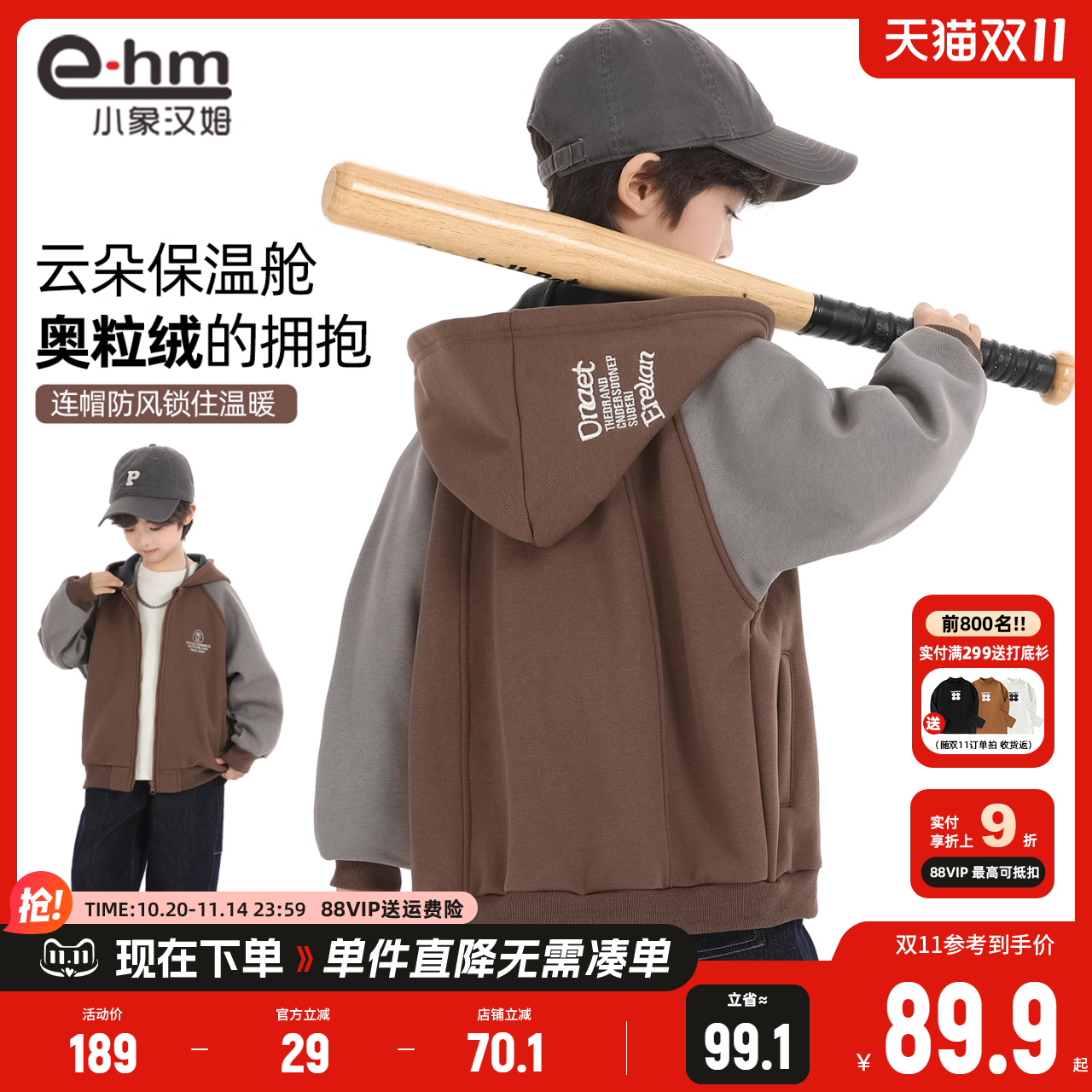 小象汉姆童装男童加绒外套秋冬款儿童一体绒拉链衫2025冬装新款潮