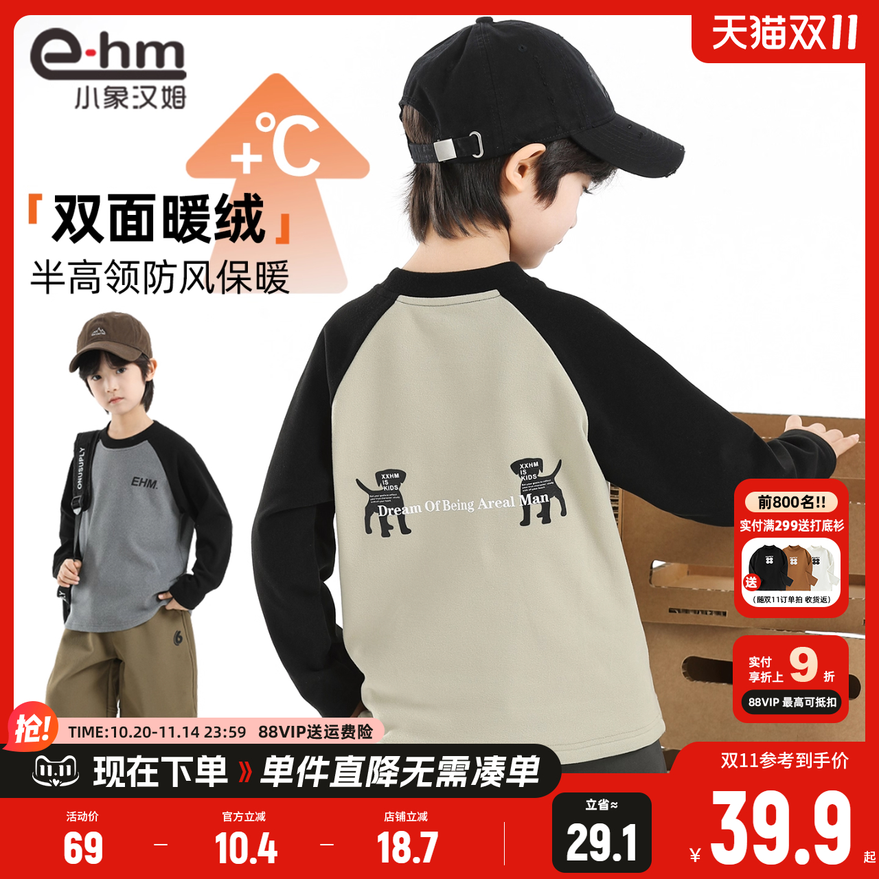 小象汉姆童装男童德绒打底衫儿童圆领秋冬装2025新款男孩内搭T潮