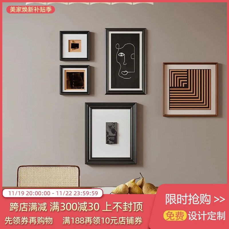 现代简约黑白几何餐厅装饰画中古风高级感客厅背景墙饭厅抽象挂画
