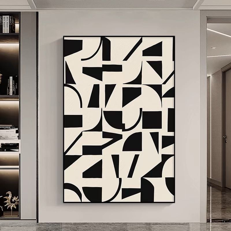 意大利客厅几何黑白装饰画玄关抽象大幅高级感沙发背景墙落地挂画