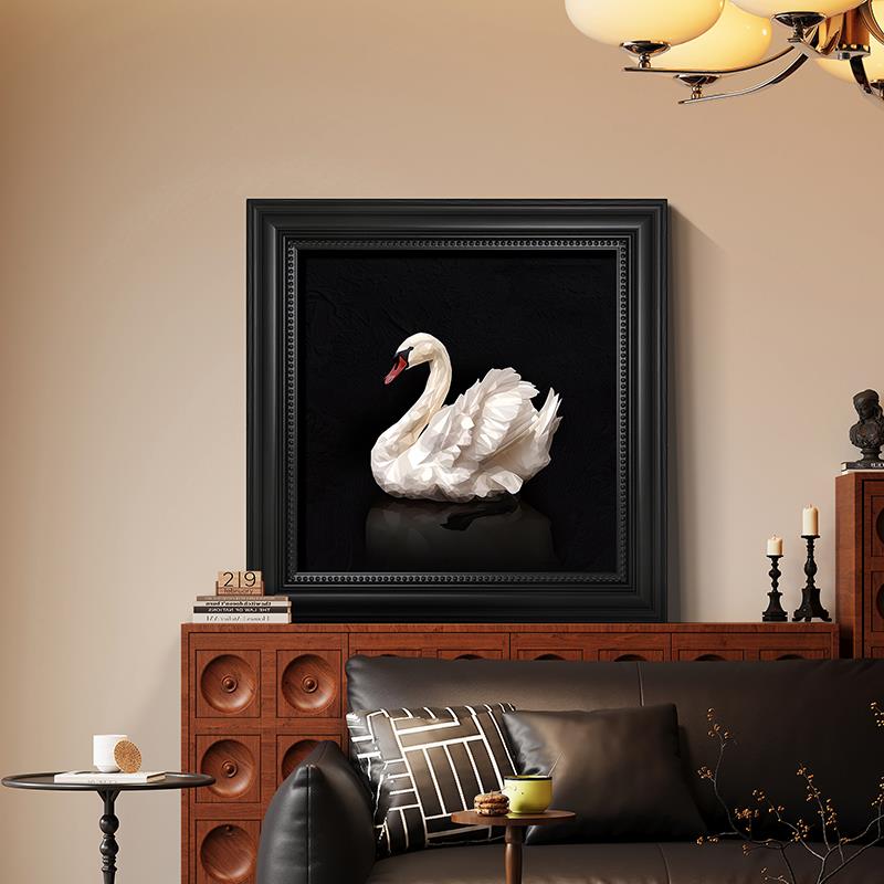 《天鹅》法式中古挂画画客厅沙发背景黑白装饰画画玄关柜覆古小众