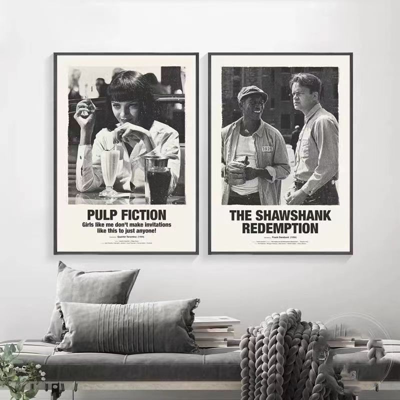 复古电影海报挂画怀旧黑白装饰画客厅卧室背景墙肖申克的救赎壁画