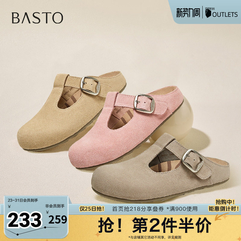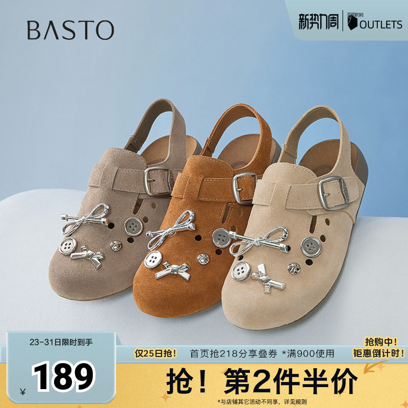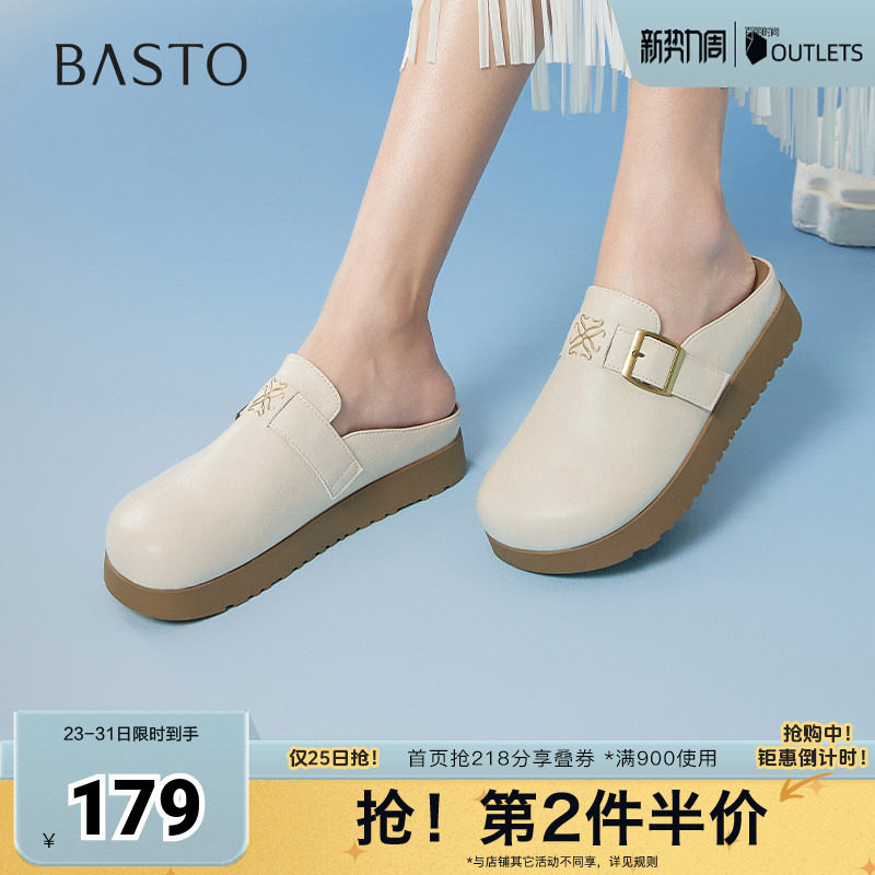 百思图夏季新款商场同款简约休闲百搭穆勒鞋平跟女凉鞋D3022BH5