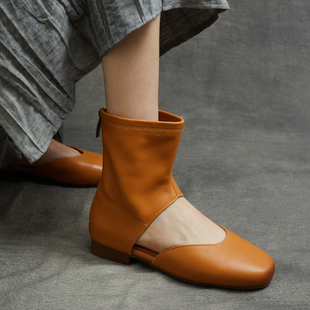 包头凉靴2026春夏季新款英伦手工真皮平跟软底中帮平底罗马凉鞋