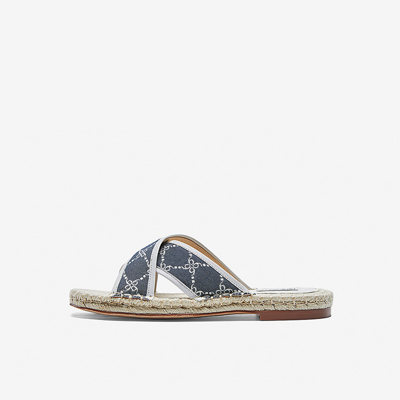 Nine West/玖熙凉鞋拖女2025年夏季新款交叉条带亚麻编织沙滩平跟