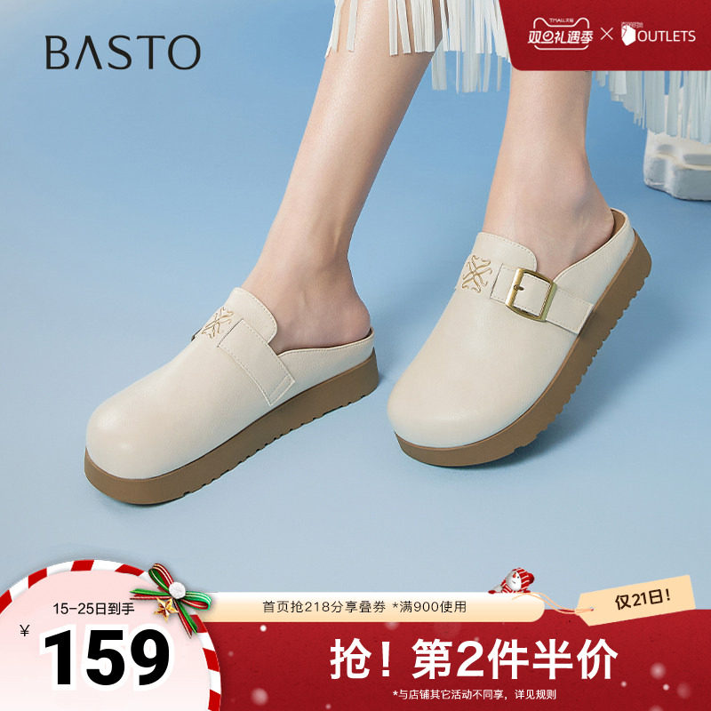百思图2025夏季新款商场同款简约休闲穆勒鞋平跟女凉鞋D3022BH5