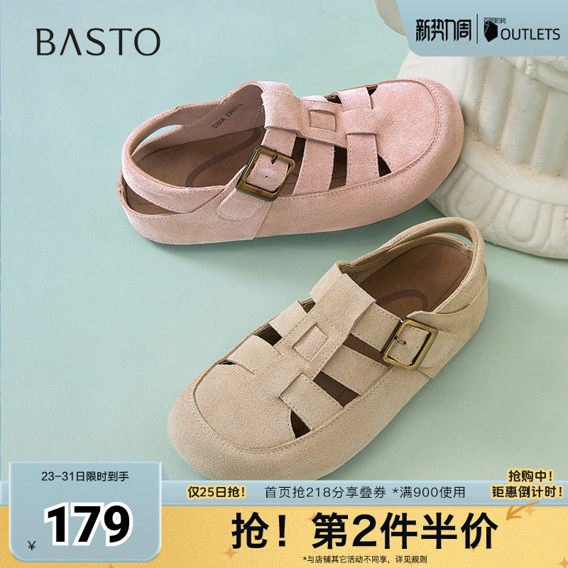 百思图夏季新款时尚复古休闲百搭洞洞鞋平跟女后空凉鞋D7775BH5
