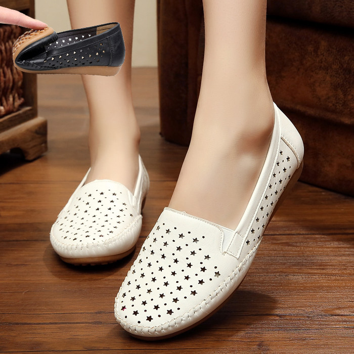 夏季妈妈鞋凉鞋女平跟透气软底镂空洞洞鞋平底舒适中老年包头凉鞋