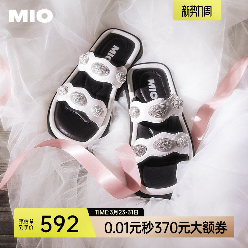 MIO米奥外穿拖鞋女夏季时尚一字拖复古水钻平跟度假凉鞋休闲凉鞋