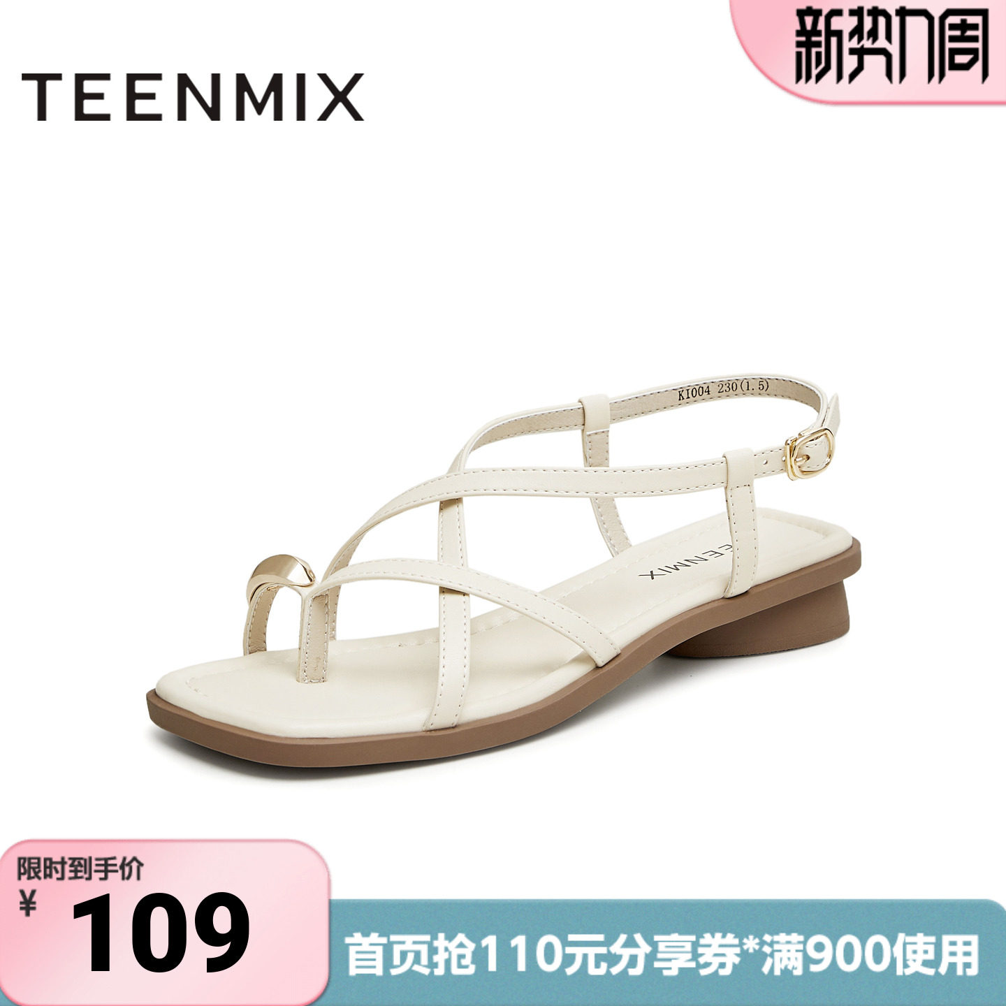 天美意夏季新款平跟夹脚交叉条带百搭一字带女凉鞋KI004BL4