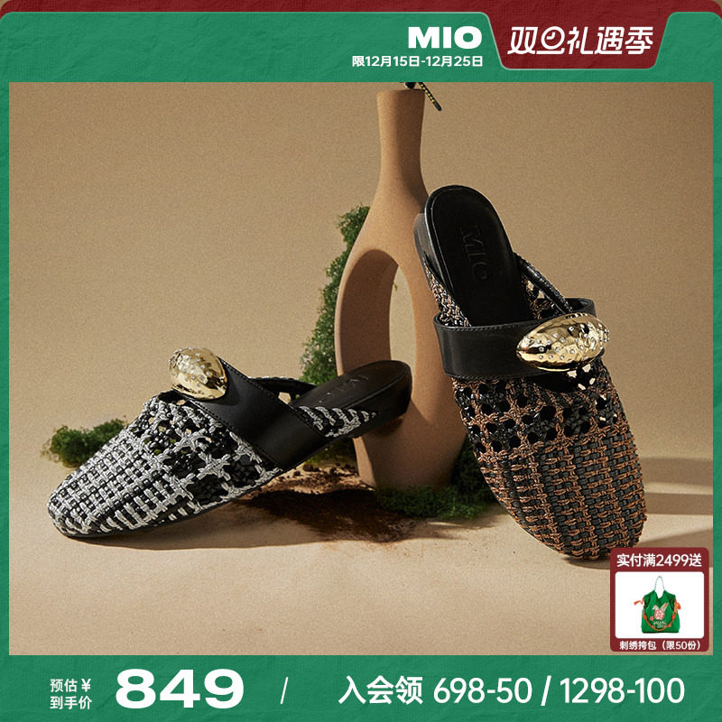 MIO米奥穆勒拖鞋女2025夏季新款镂空时尚撞色平跟编织凉鞋包头拖