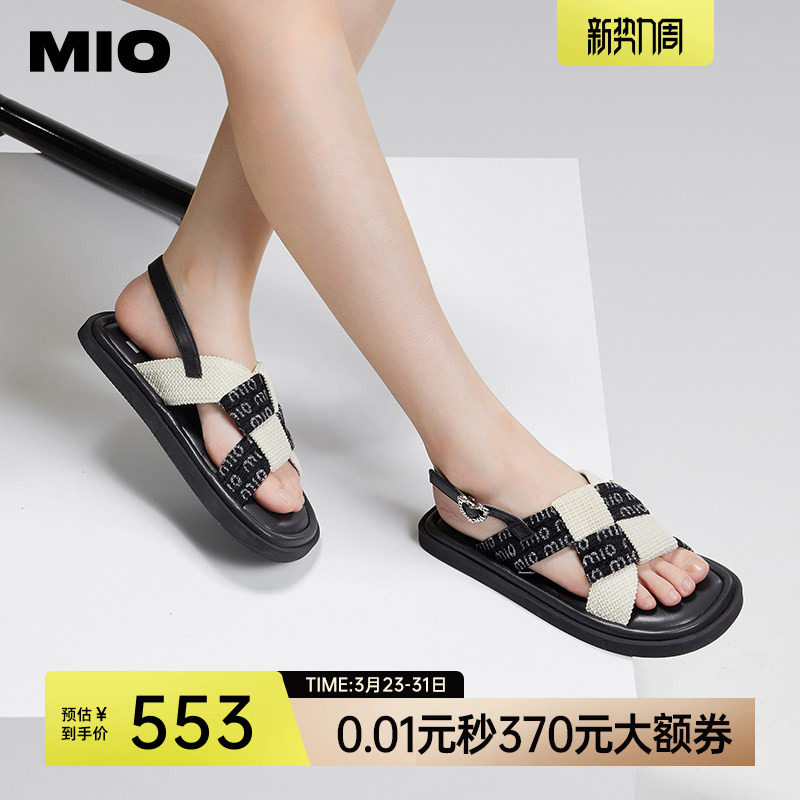 MIO米奥夏季欧美风平跟耐磨凉鞋蝴蝶结搭扣时尚舒适休闲沙滩鞋女