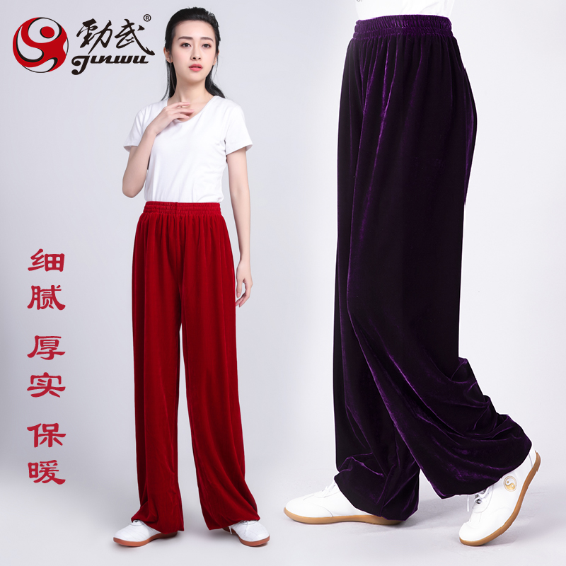 高档劲武太极女秋丝冬季保暖加厚金绒太极拳练功装服灯笼裤裤男新