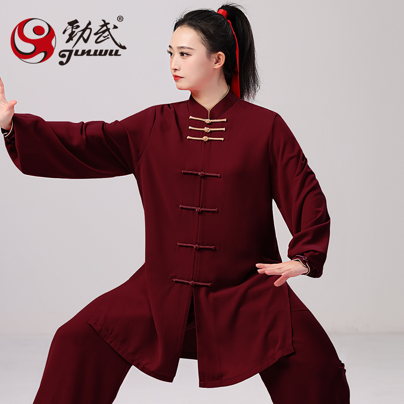 劲武太极服女款新款八段锦练功服冰丝缎武术服太极拳衣服秋冬套装
