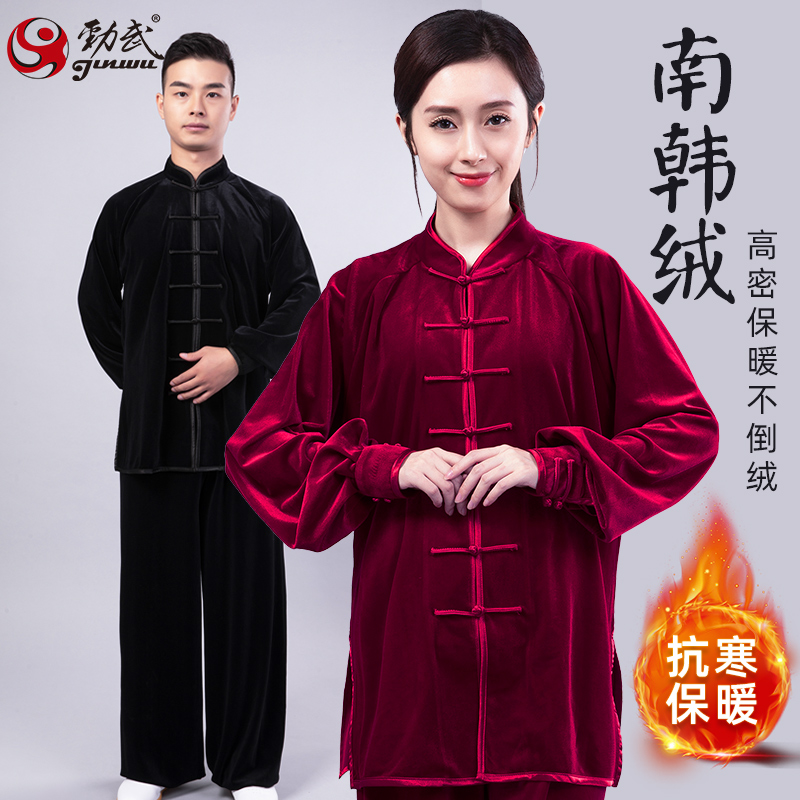 劲武秋冬季厚款南韩绒太极服男女长袖太极拳表演服团队练功服丝绒