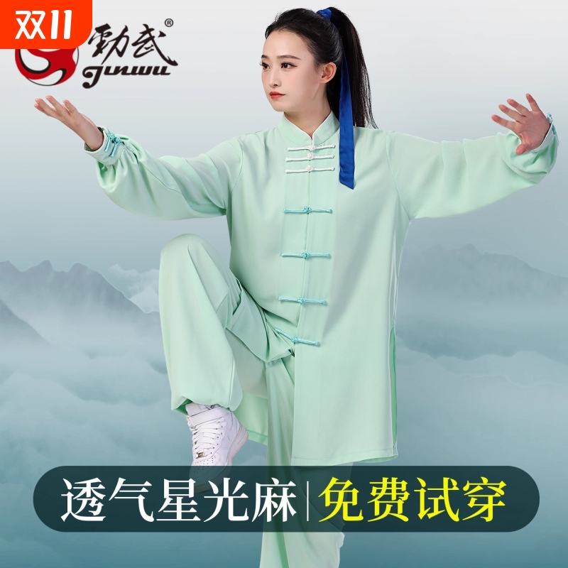 劲武太极服女透气星光麻太极拳练功服中式长袖男表演比赛武术服装