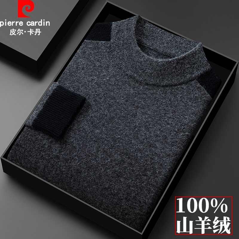 皮尔卡丹纯羊绒衫男半高领加厚毛衣中老年爸爸冬季羊毛内搭打底衫