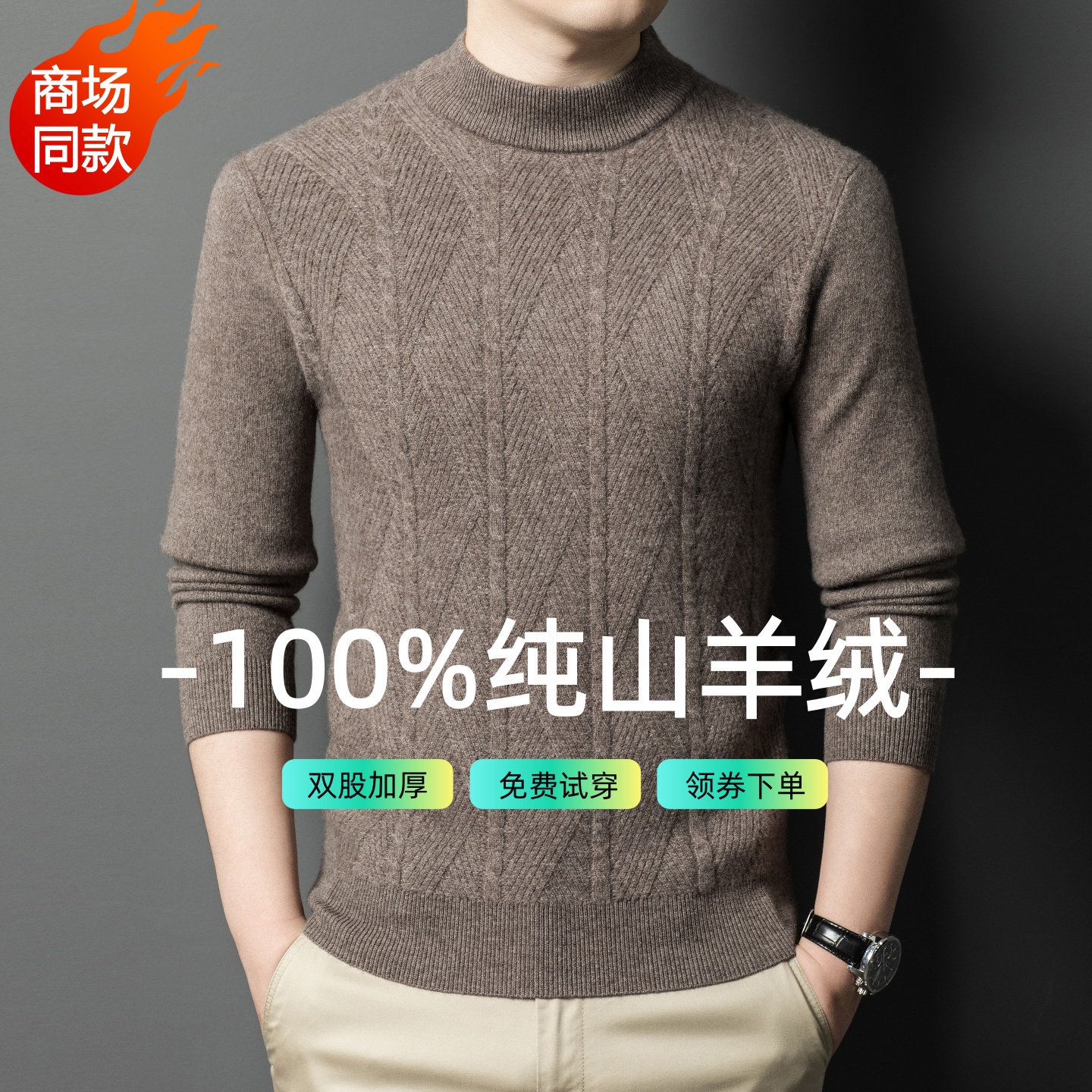 2025新款男士100%纯羊毛衫半高领加厚毛衣针织打底羊绒衫秋冬上衣