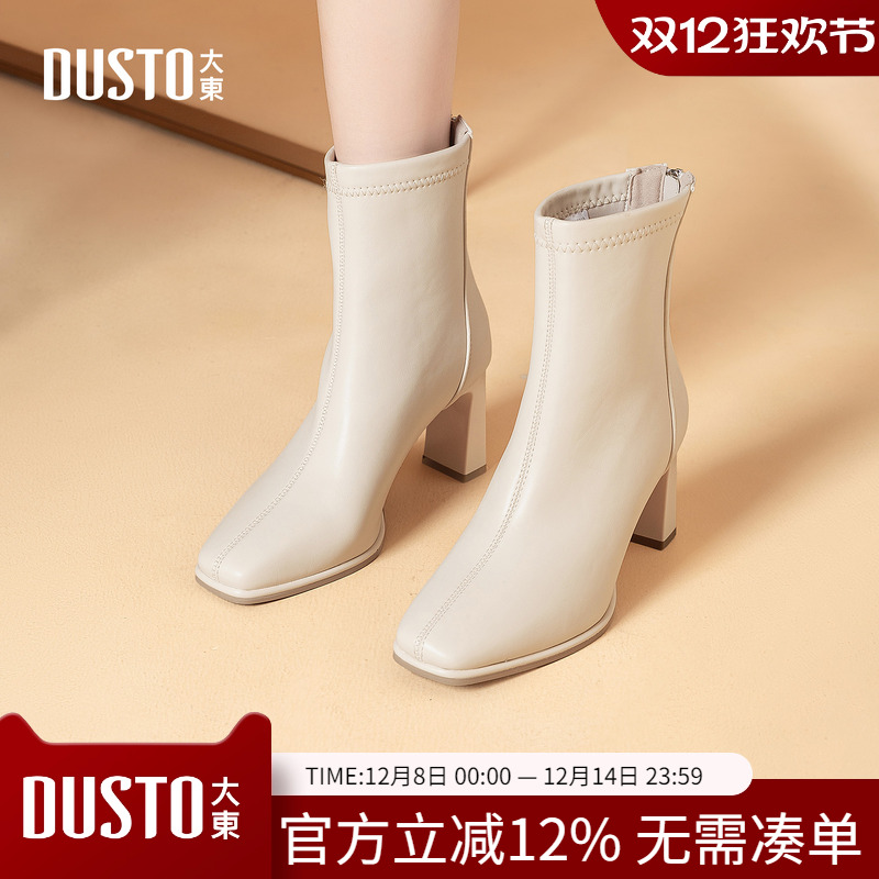 大东dd短靴女2025秋冬季新款女鞋法式高跟裸靴粗跟女靴瘦瘦靴子女