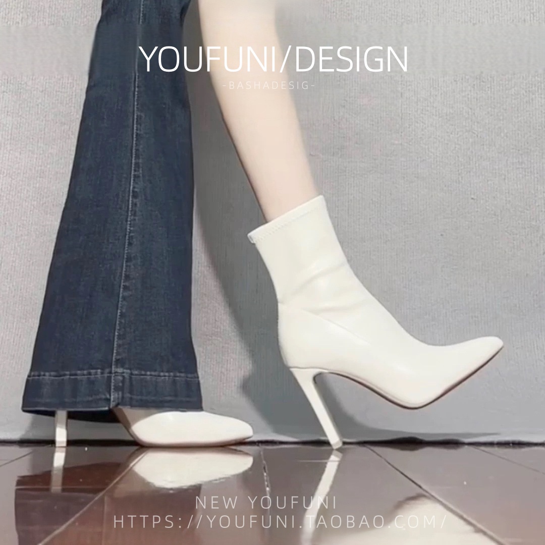 网红瘦瘦靴小跟短靴女春秋单靴弹力袜子靴尖头细跟高跟鞋女冬裸靴