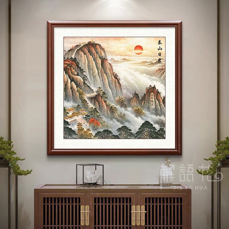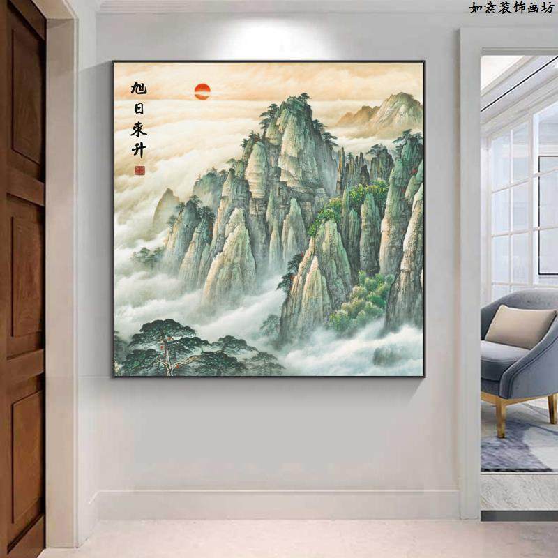 入户泰山日出玄关画画靠山图过道正方形装饰画画有山无水画画办公