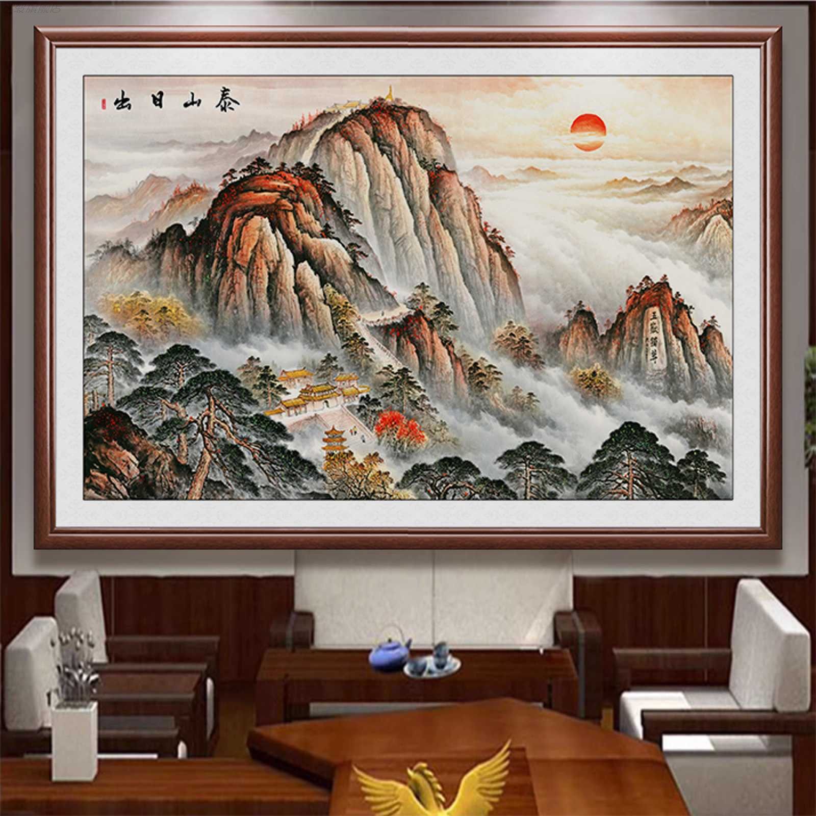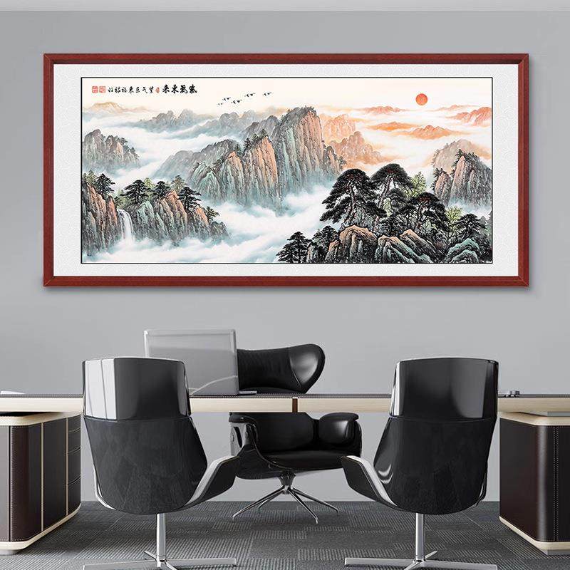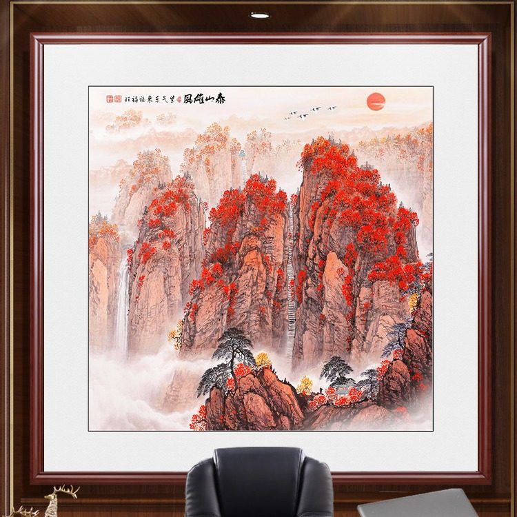 泰山日出图挂画五岳独尊有山无水画靠山招财装饰画领导办公室国画