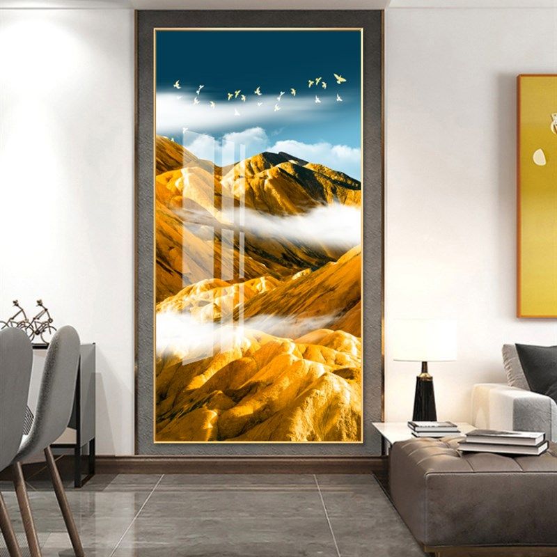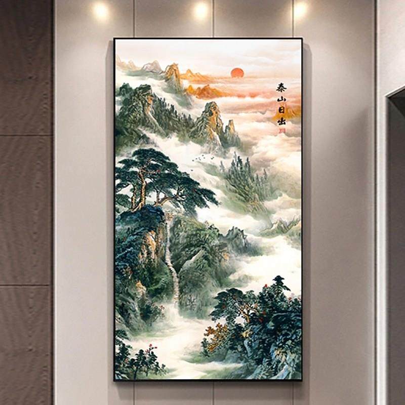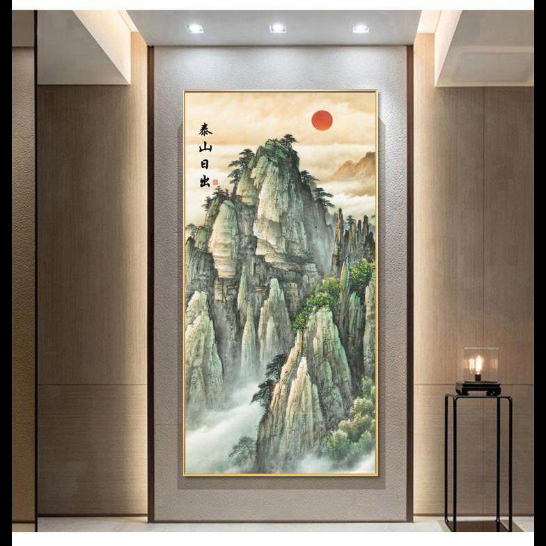 有山无水画靠山图入户玄关过道正对门风水招财挂画泰山日走廊竖版