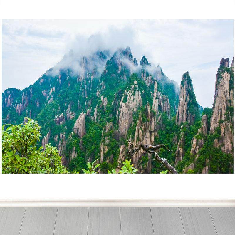 有山无水靠山图竖版贴画墙贴自粘贴纸办公室大山高山客厅玄关定制