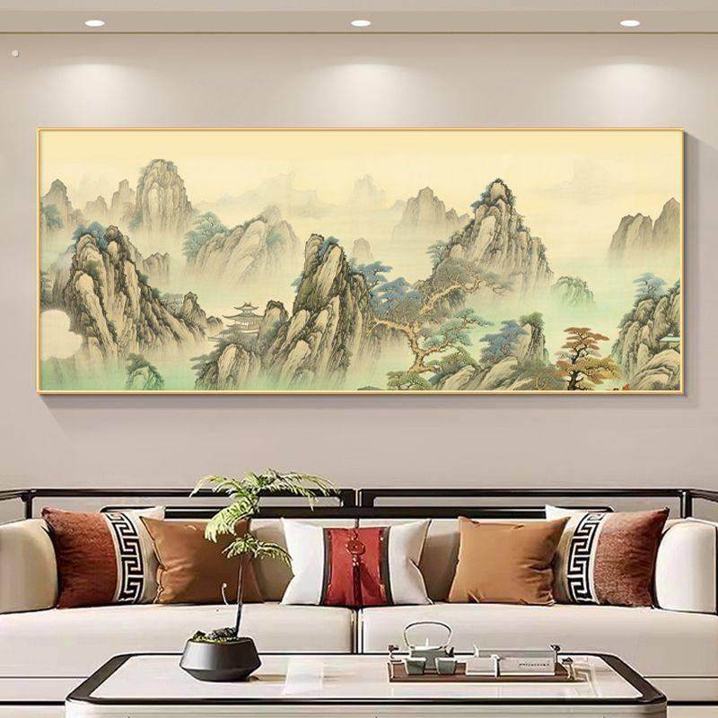 东西墙客厅挂画沙发背景墙装饰画青山画横幅靠山图聚财有山无水画