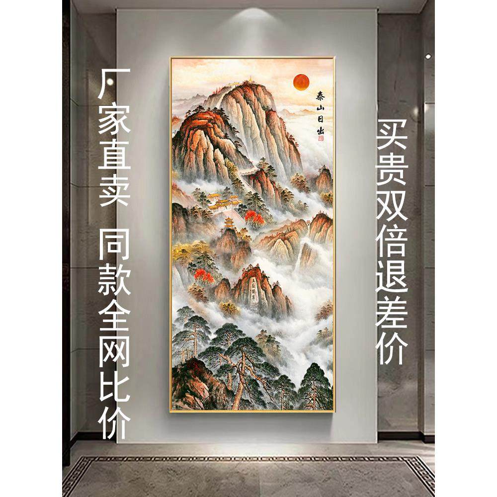 有山无水画靠山图入户玄关过道风水招财挂画竖旭日东升泰山日出图