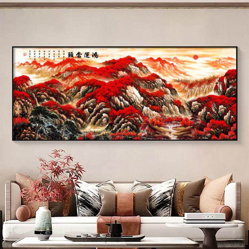 旭日东升正方形装饰画招财风水画办公室玄关挂画靠山图有山无水画