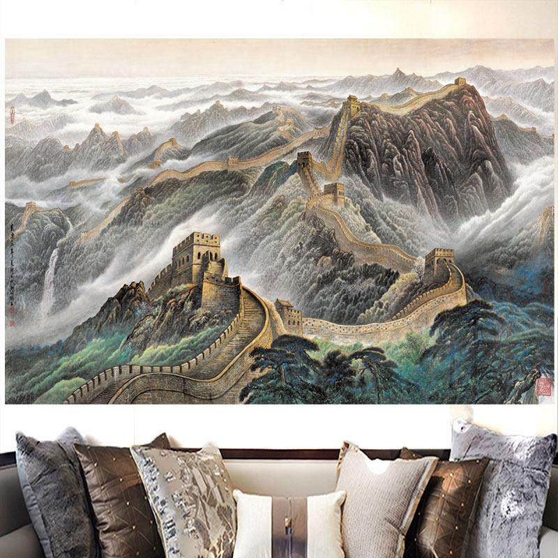 万里长城靠山图海报自粘贴纸墙画背有靠山风水风景画自有山无水画