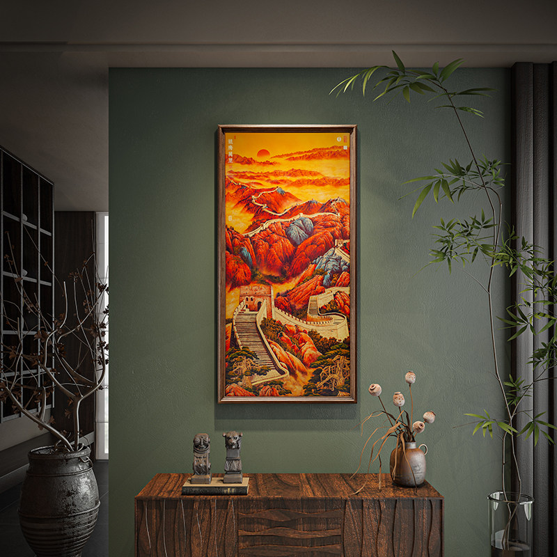 现代装饰画万里长城挂画办公桌后面山水画有山无水画办公室聚宝盆