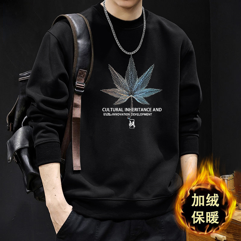 男式秋冬卫衣韩版穿搭刺绣加绒打底衫男款加厚上衣青少年潮牌衣服