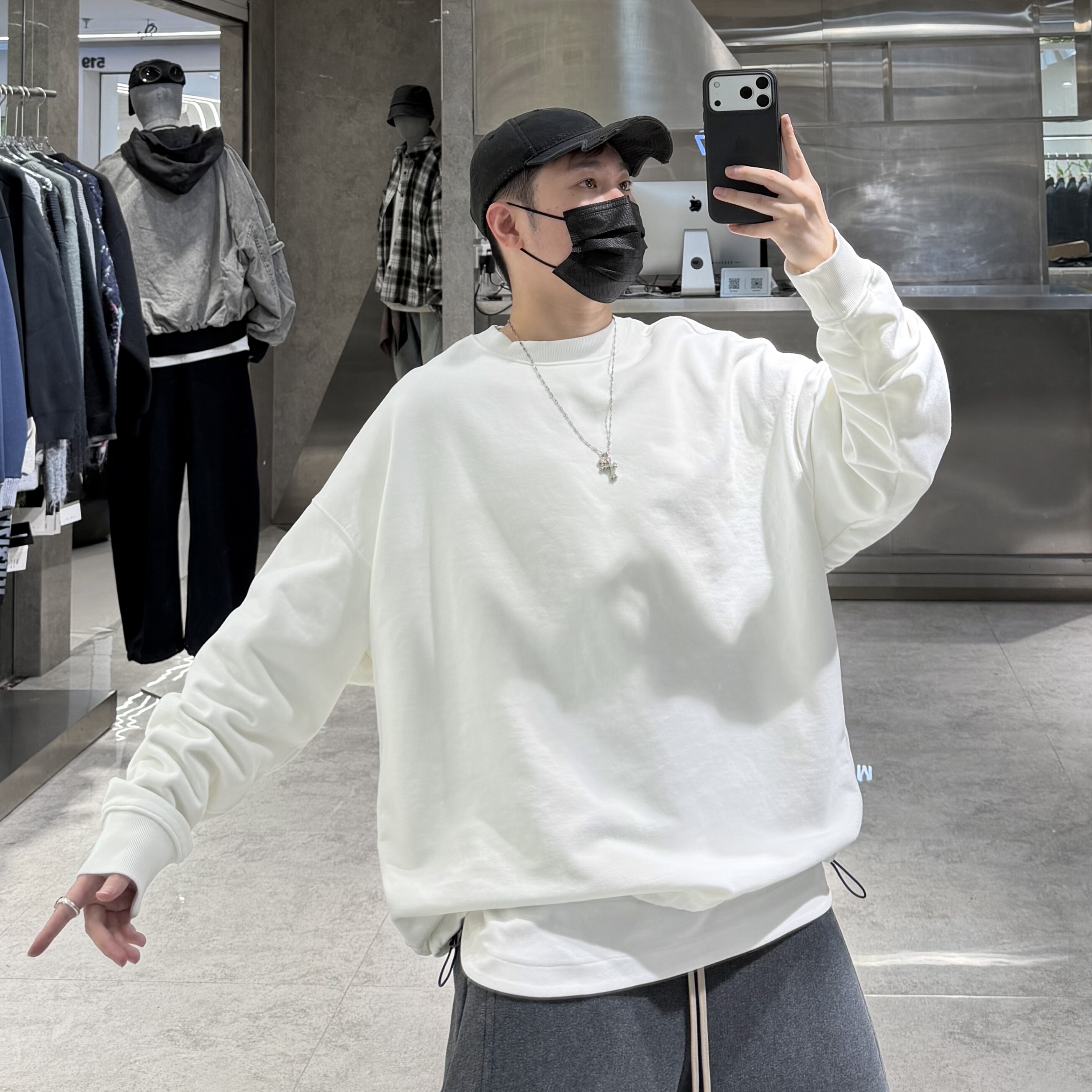 秋冬季新款潮牌韩版简约纯色内搭长袖卫衣男士潮流休闲圆领打底衫