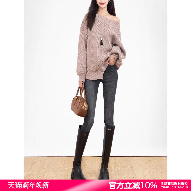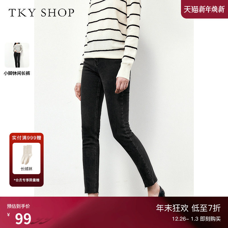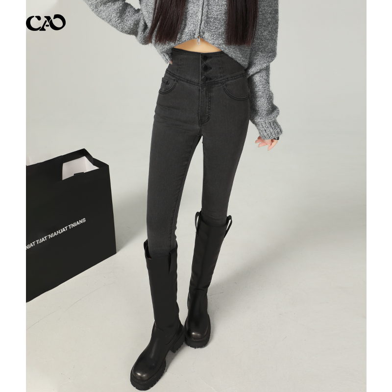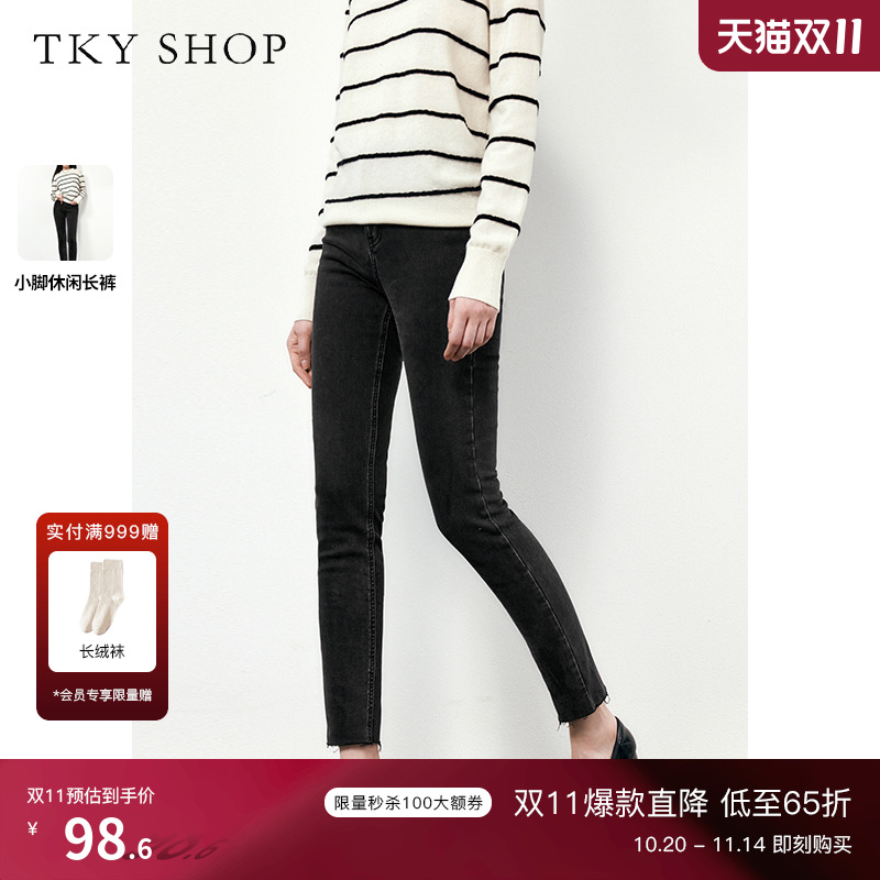 TKY SHOP时尚气质牛仔裤女秋冬新款高腰显瘦烟灰色修身小脚铅笔裤